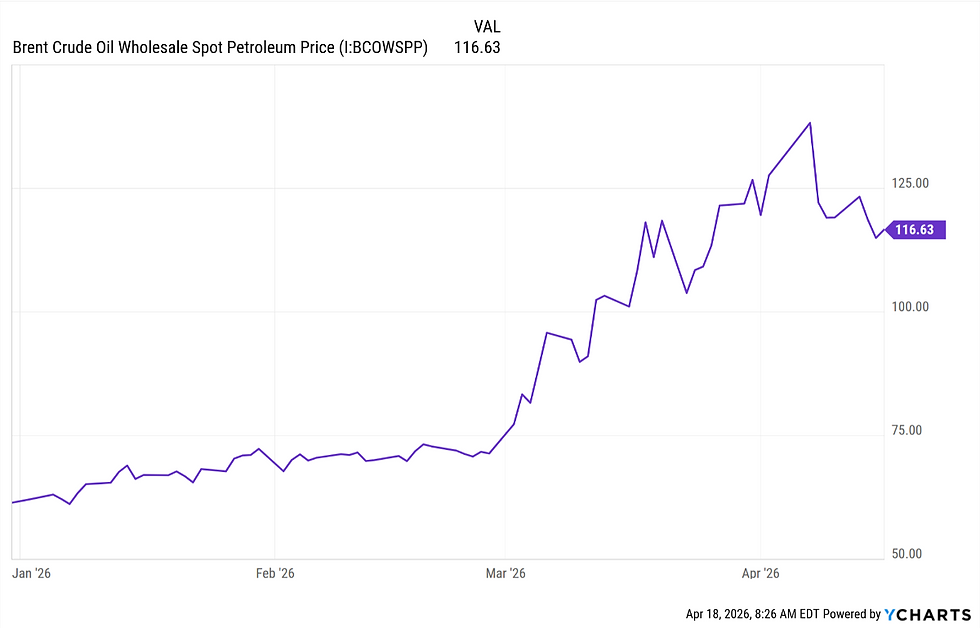 OIL PRICES EDGE DOWN: The Brent Crude Oil spot price edged down from last week's closing price of $119 to $116. This is progress, but whether it holds depends on whether there is progress or setbacks in the Middle East this week.